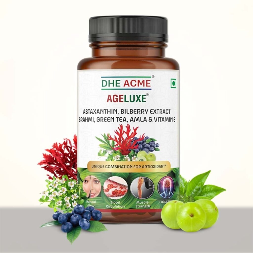 - AGELUXE Antioxidant Astaxanthin capsules combine the power of Astaxanthin, Bilberry, Brahmi, Green Tea, Amla, and Vitamin E